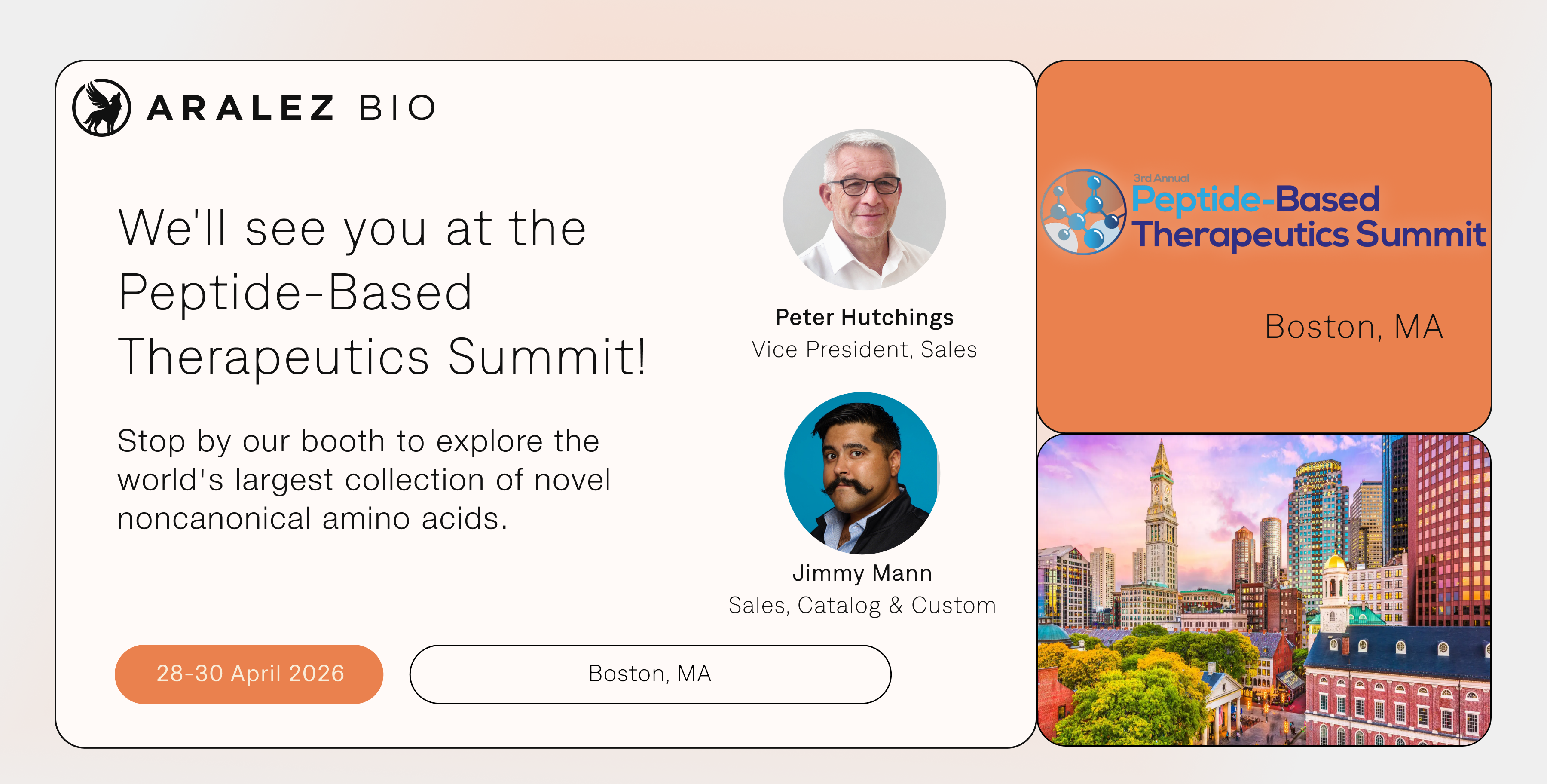 We'll be in Boston, MA for the 3rd Peptide-Based Therapeutics Summit. Stop by our booth and talk all things noncanonical with Peter Hutchings and Jimmy Mann.